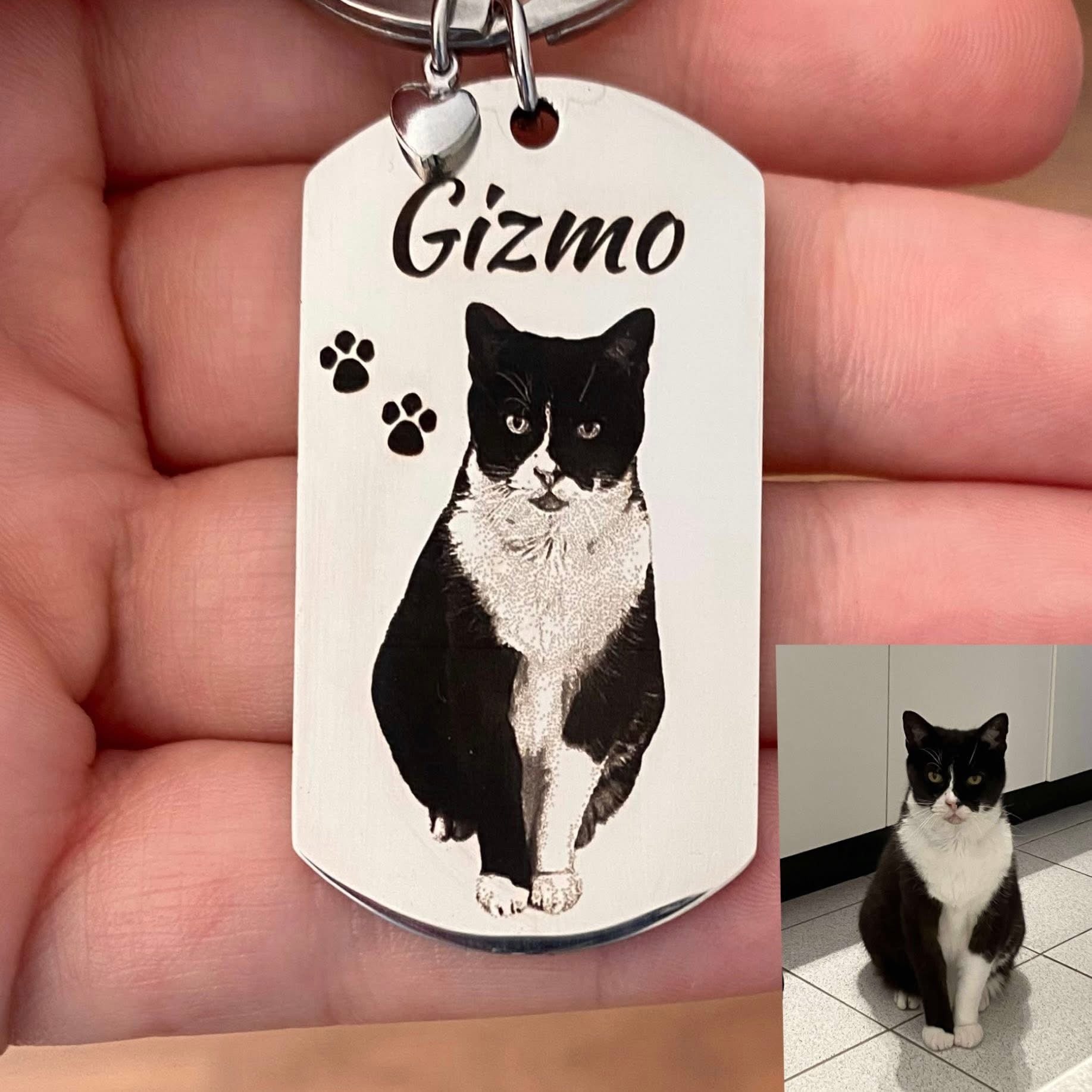 Veuillez télécharger votre photo un peu plus bas avant de terminer votre commande. Le décor derrière lui sera retiré et une petite patte sera gravé près de lui.